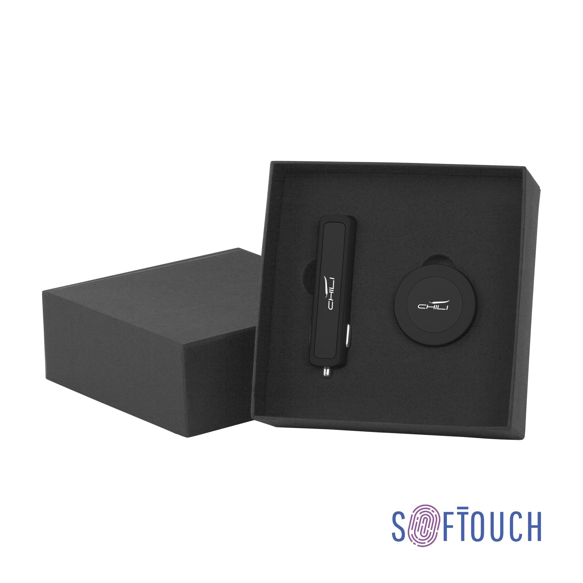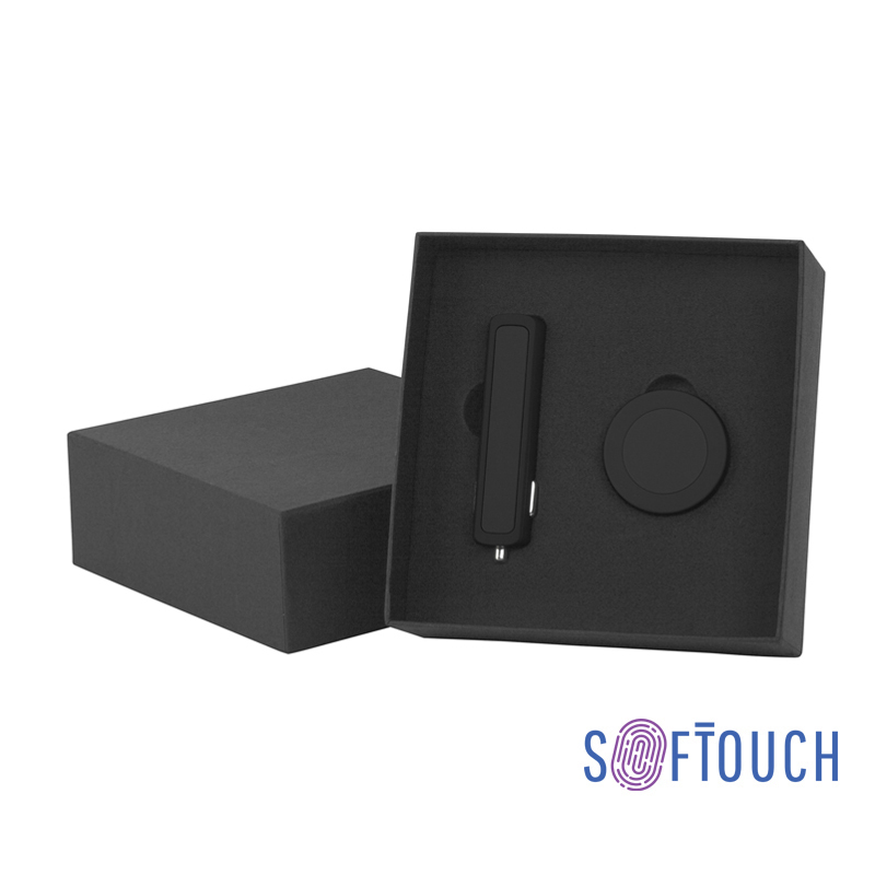 Набор автомобильное зарядное устройство 'Slam' 6912-3 + магнитный держатель для телефона 'Allo' 6915-3 в футляре, черный, покрытие soft touch артикул: 6944-3
