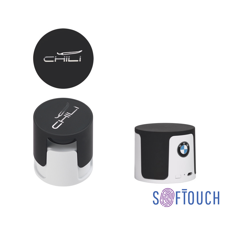 Беспроводная Bluetooth колонка 'Echo', верх: черный, покрытие soft touch, хромированная подложка, корпус: белый пластиковый артикул: 6891-1/3