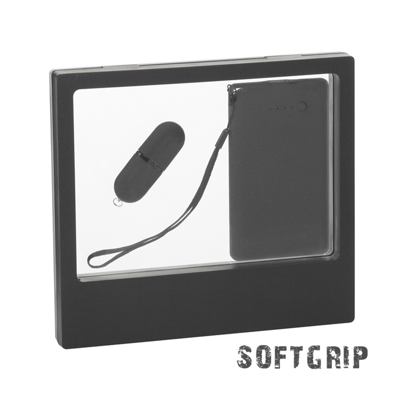 Набор флешка 'Камень' 8837-3/16Gb + источник 8842-3, емкость 4000 mAh, покрытие soft grip, черный артикул: 8847-3/3