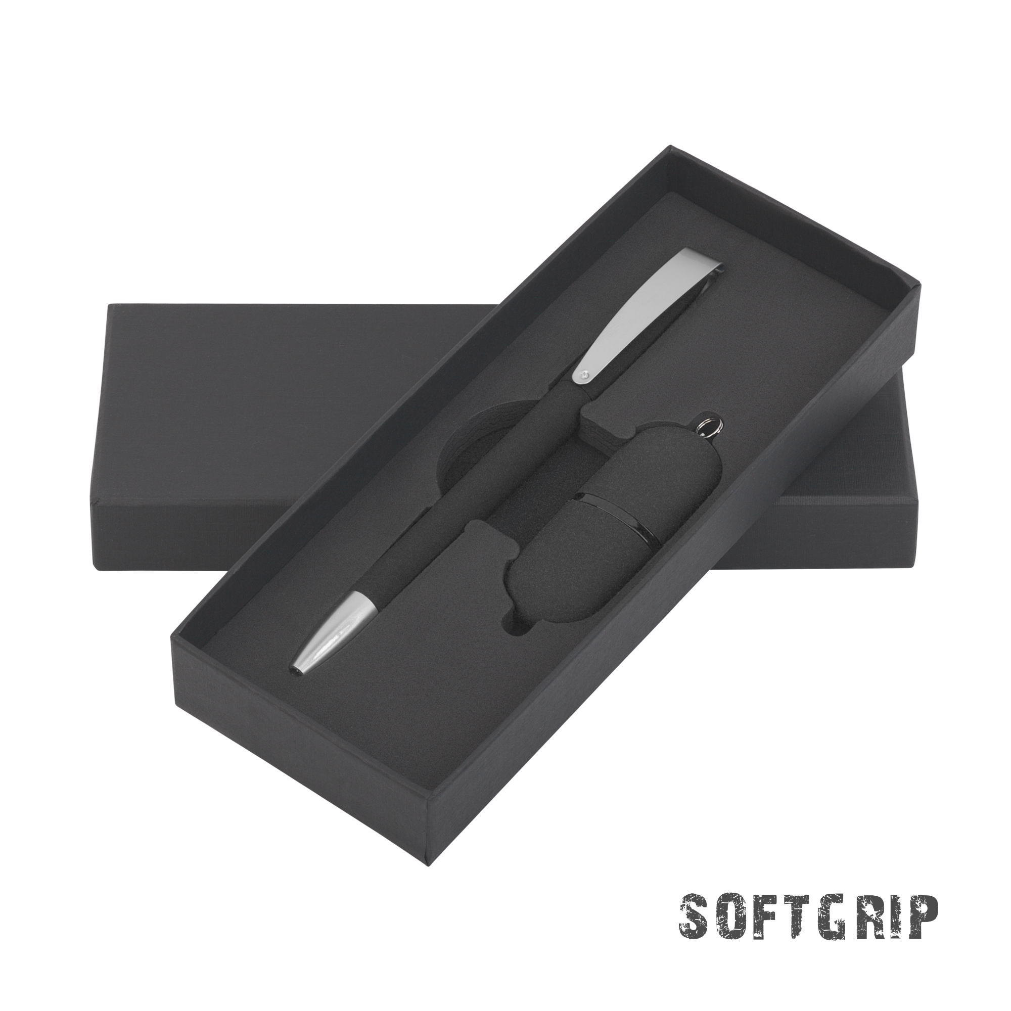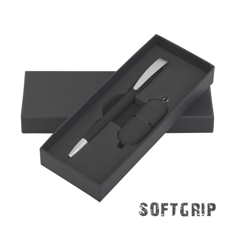 Набор ручка 'COBRA SOFTGRIP MM' 41070-3 + флешка 'Камень' 8837-3/16Gb, покрытие soft grip, черный артикул: 8852-3