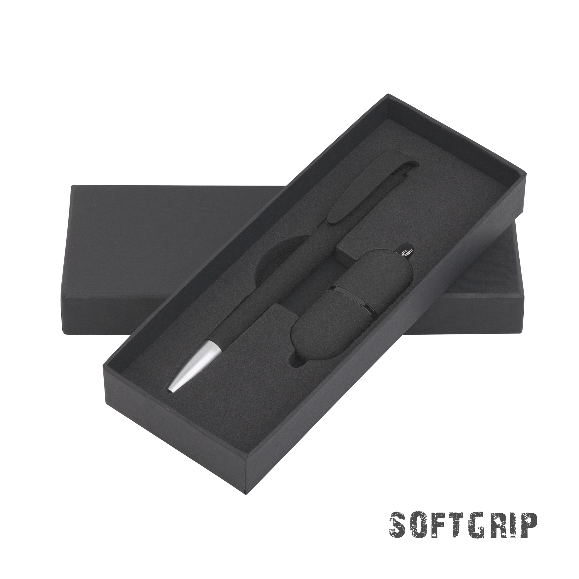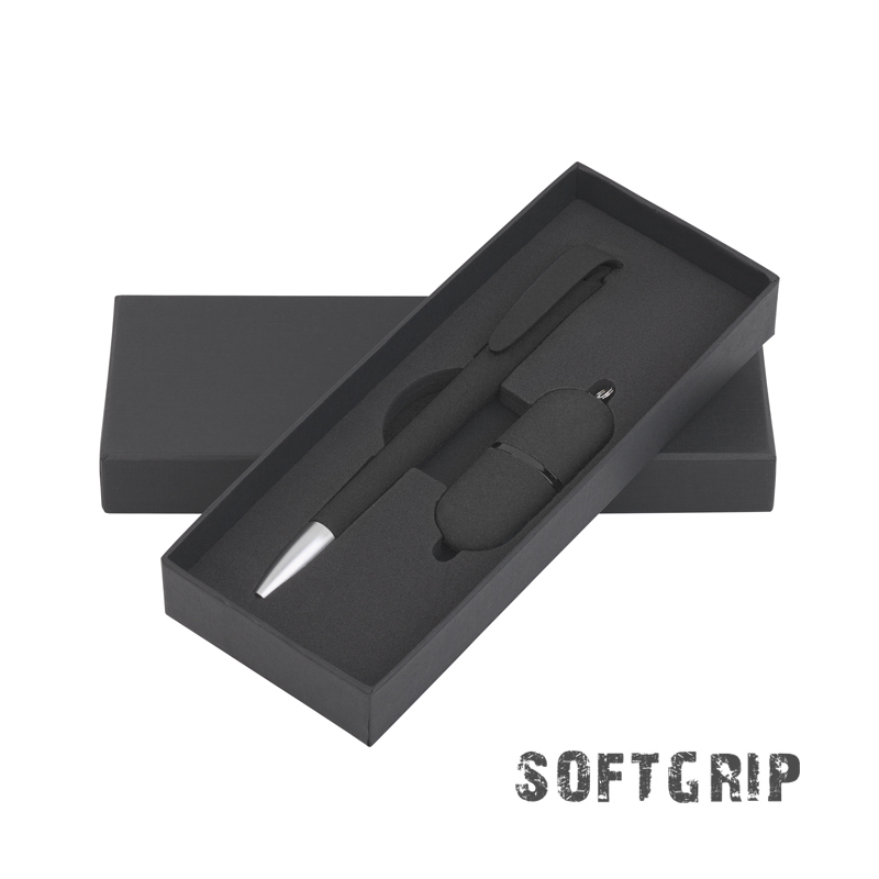 Набор ручка 'JONA SOFTGRIP M' 41128-3 + флешка 'Камень' 8837-3/16Gb, покрытие soft grip, черный# артикул: 8850-3