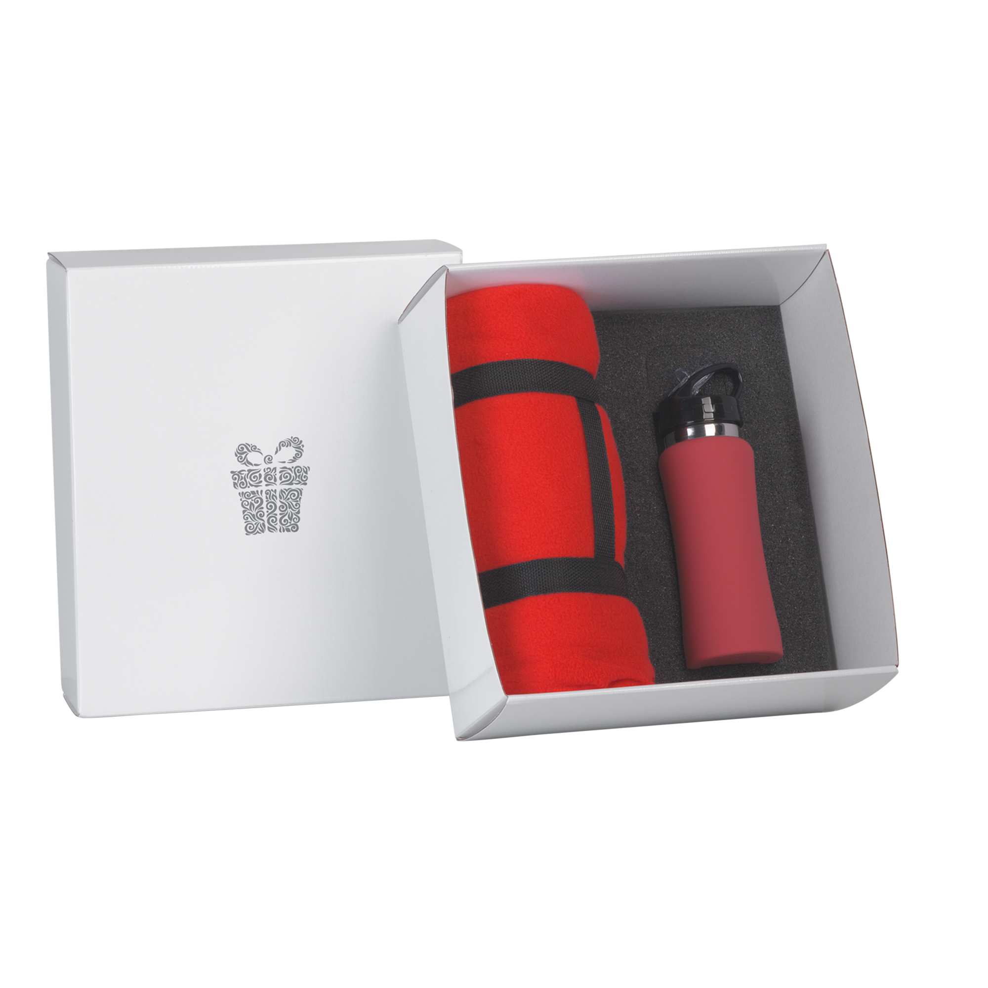 Набор подарочный 'Спортивная пауза', бутылка спортивная 'Индиана' 7803-4, плед 'Байкал' 8376-4, коробка, красный артикул: 7919-4N