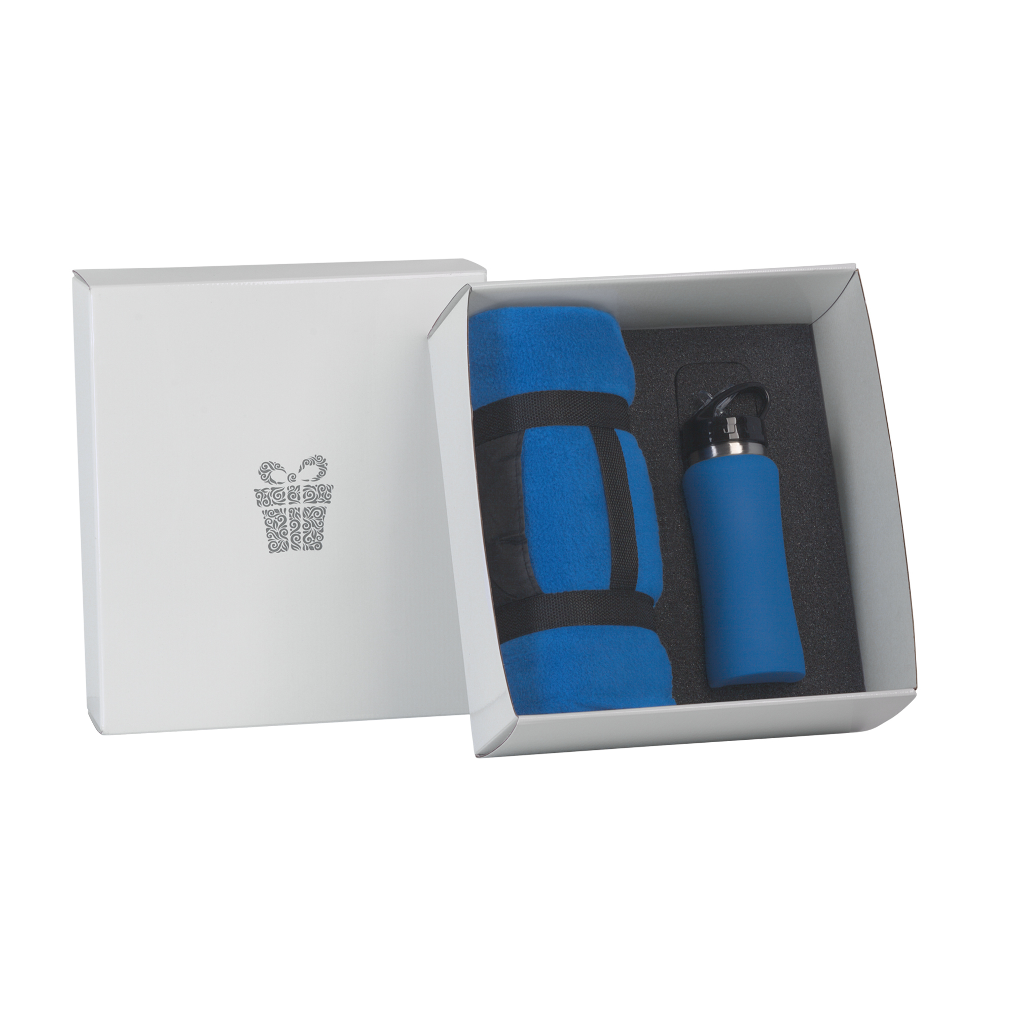 Набор подарочный 'Спортивная пауза', бутылка спортивная 'Индиана' 7803-21, плед 'Байкал' 8376-21, коробка, синий артикул: 7919-21N