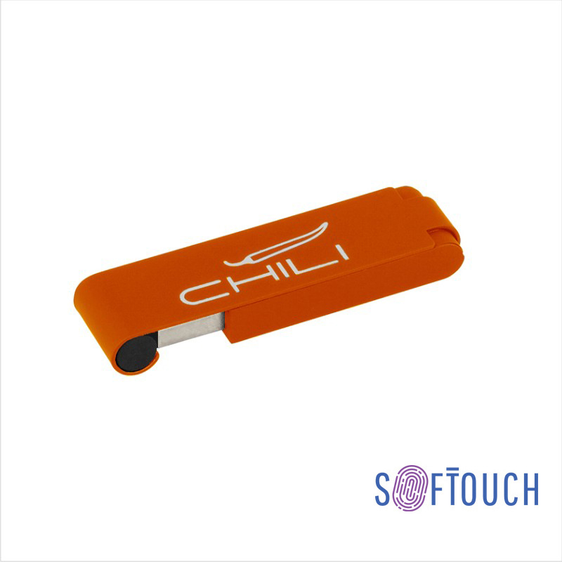 Флеш-карта 'Case', объем памяти 8GB,оранжевая(1505С), покрытие soft touch,хромированная подложка на клипе. артикул: 6837-10S/8Gb