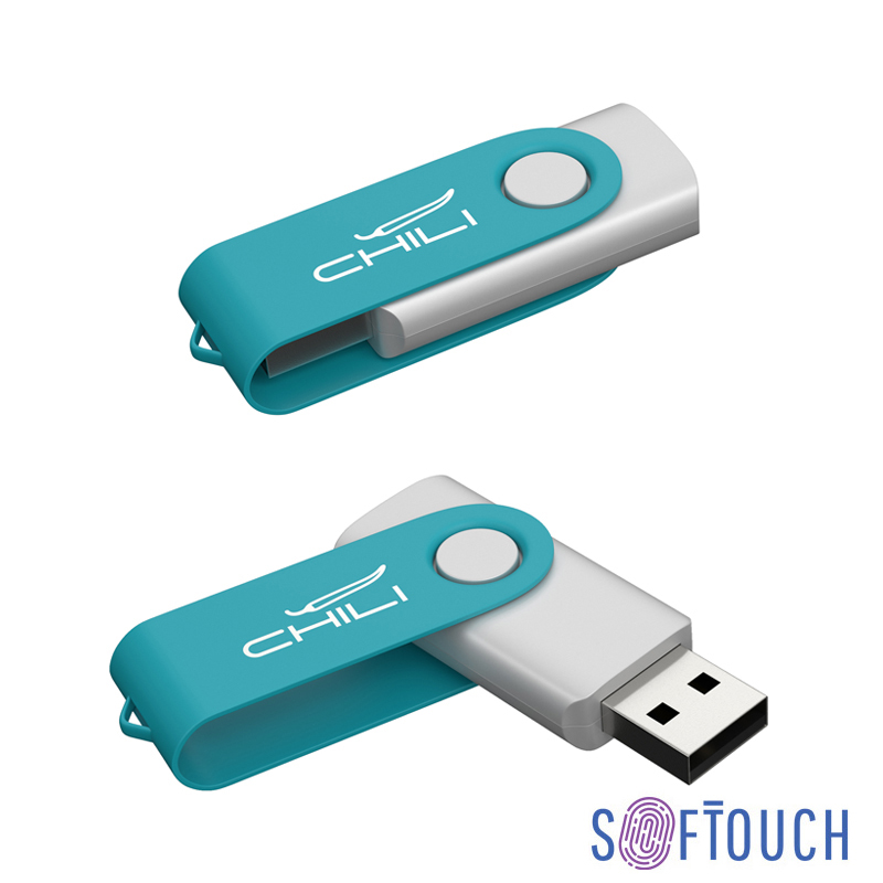 Флеш-карта 'Vostok', объем памяти 16GB, бирюзовый (7466U), покрытие soft touch, пластиковый корпус и металлический клип, хромированная подложка на клипе# артикул: 6874-44S/16Gb