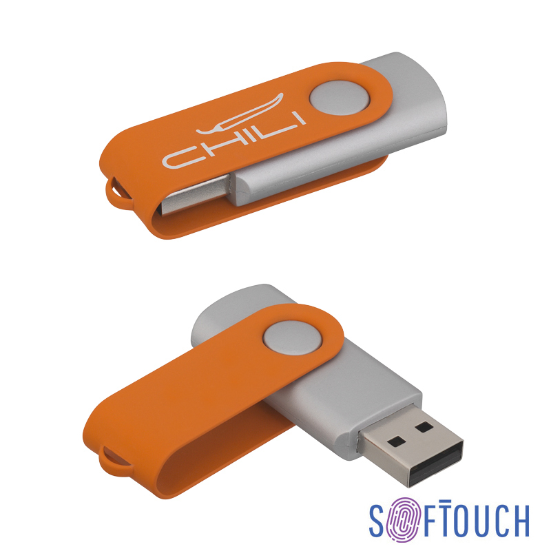 Флеш-карта 'Vostok', объем памяти 16Gb, оранжевый (1505C), покрытие soft touch, пластиковый корпус и металлический клип, хромированная подложка на клипе# артикул: 6874-10S/16Gb