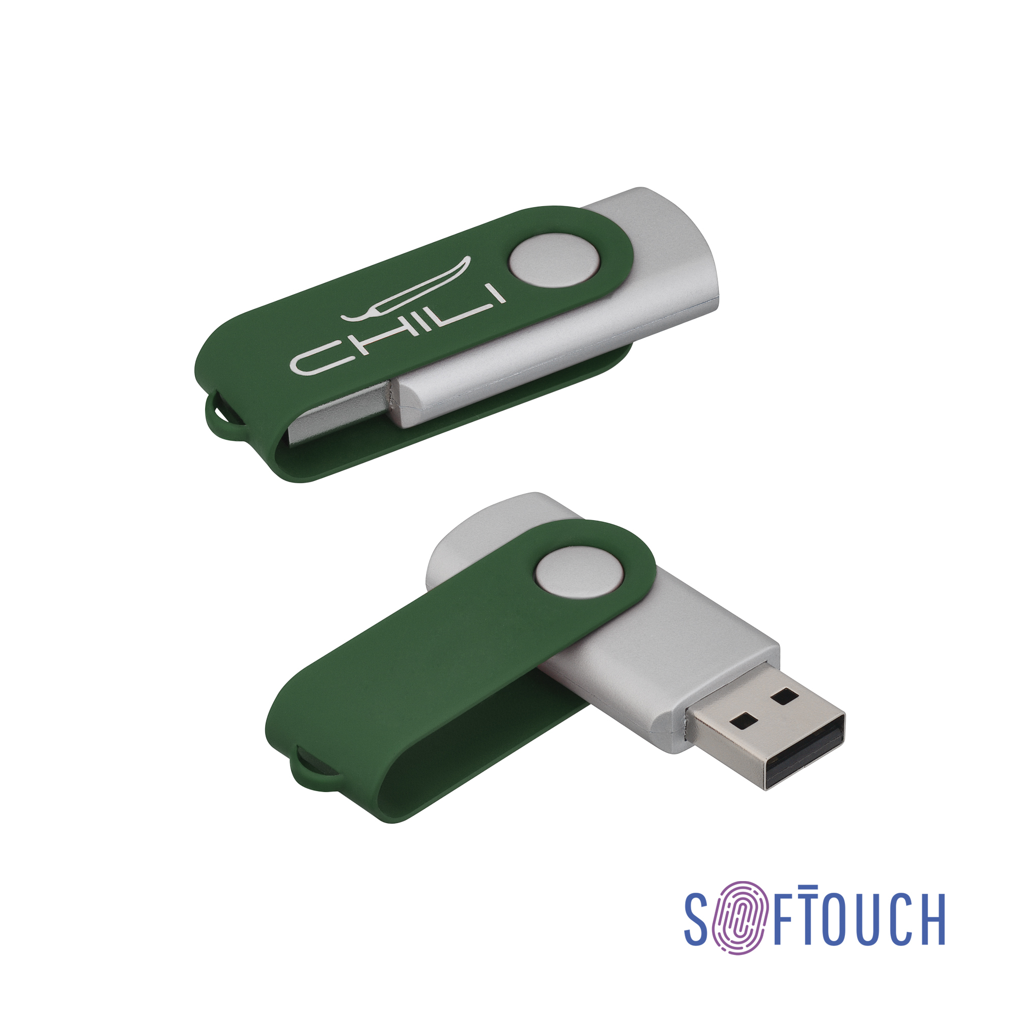 Флеш-карта 'Vostok', объем памяти 16Gb, темно-зеленый (7728C), покрытие soft touch, пластиковый корпус и металлический клип, хромированная подложка на клипе# артикул: 6874-61S/16Gb