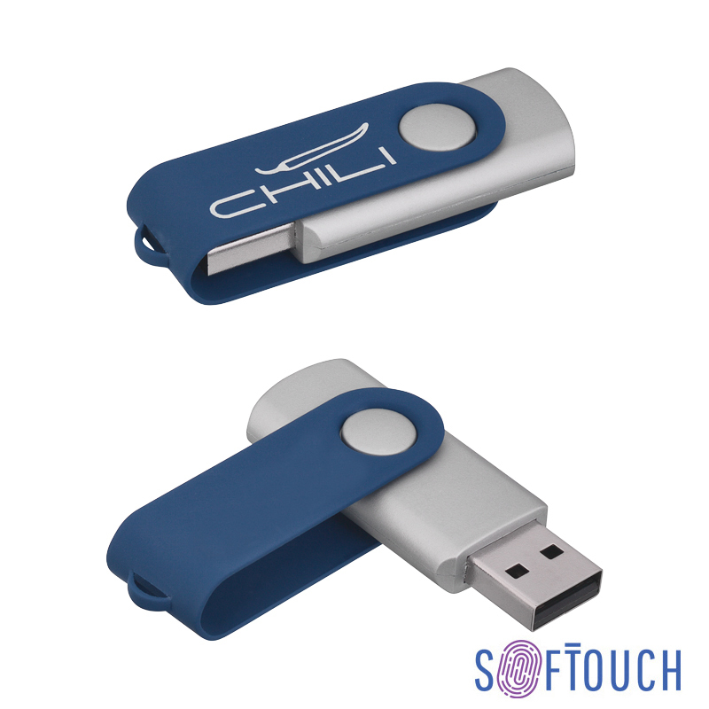 Флеш-карта 'Vostok', объем памяти 8GB, темно-синий (281C), покрытие soft touch, пластиковый корпус и металлический клип, хромированная подложка на клипе артикул: 6874-21S/8Gb