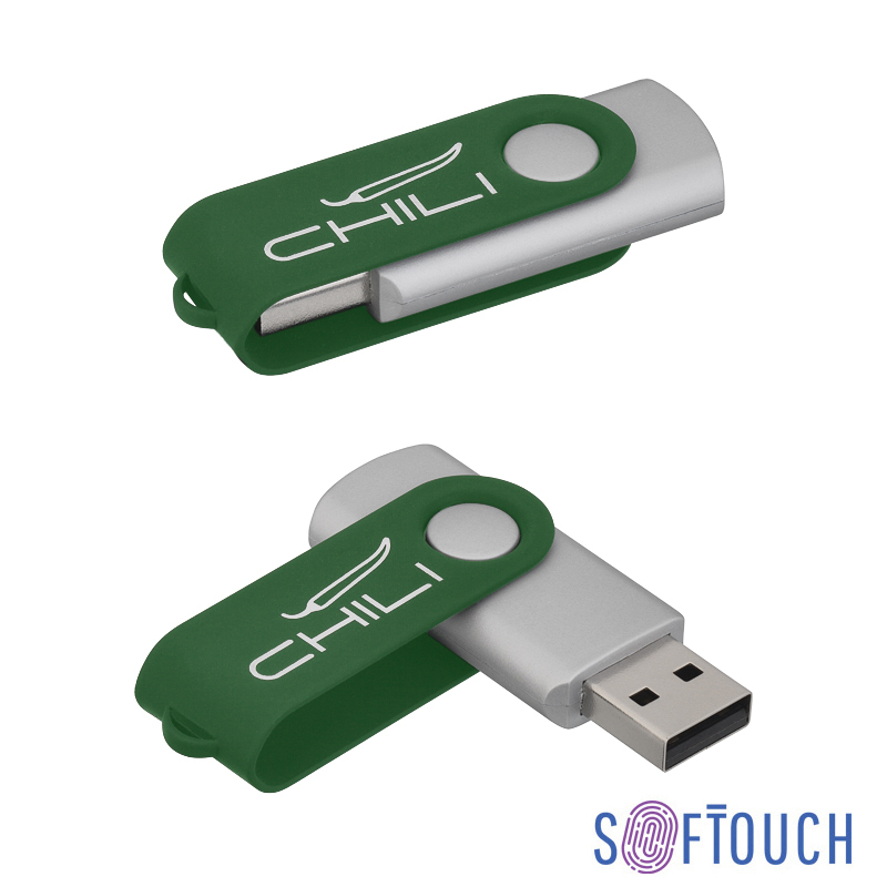 Флеш-карта 'Vostok', объем памяти 8GB, темно-зеленый (7728C), покрытие soft touch, пластиковый корпус и металлический клип, хромированная подложка на клипе артикул: 6874-61S/8Gb