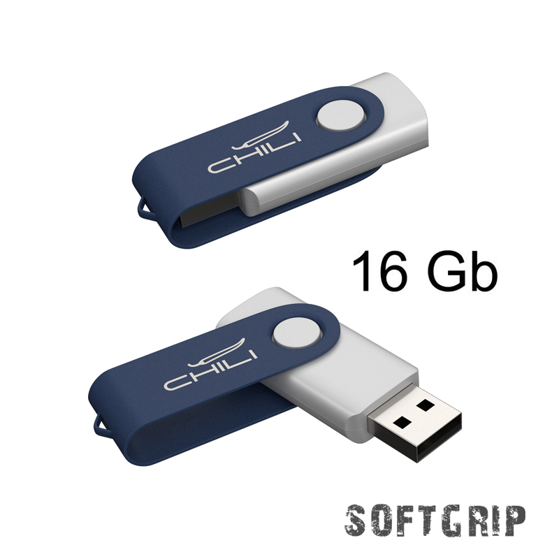 Флеш-карта 'Vostok SOFTGRIP', объем памяти 16GB, темно-синий, покрытие soft grip на корпусе и клипе, хромированная подложка на клипе# артикул: 6951-21/16Gb