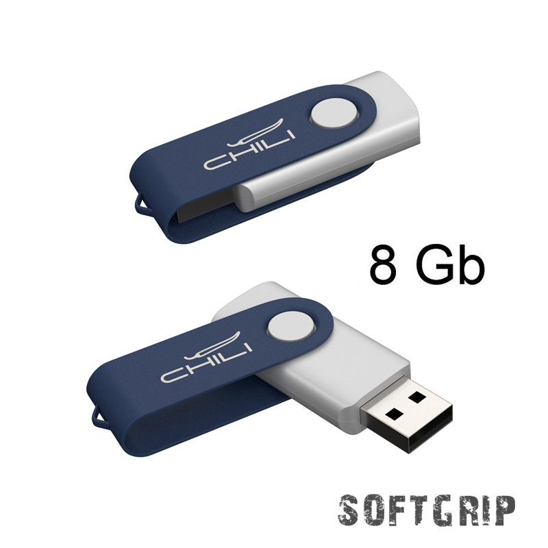 Флеш-карта 'Vostok SOFTGRIP', объем памяти 8GB, темно-синий, покрытие soft grip на корпусе и клипе, хромированная подложка на клипе артикул: 6951-21/8Gb