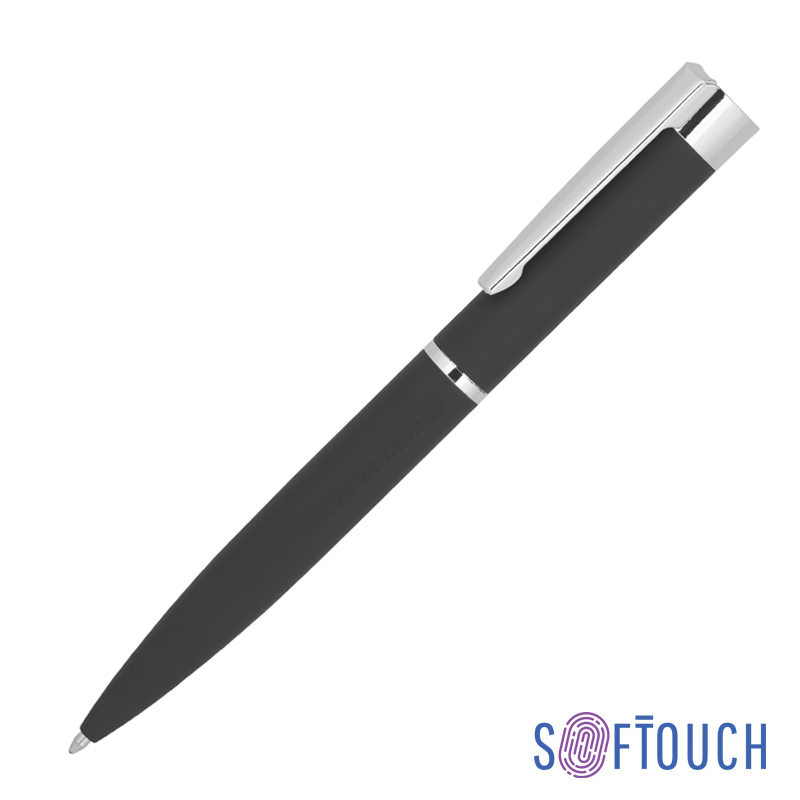 Ручка шариковая 'Alice' черная, металлический корпус в покрытии soft touch, блестящая серебристая подложка, металлический хромированный клип, синий стержень артикул: 7418-3S