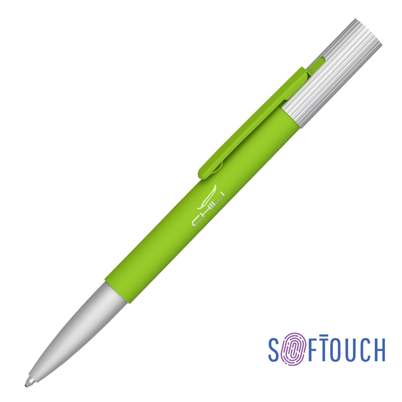 Ручка шариковая 'Clas', зеленое яблоко (376U) с серебристыми деталями, покрытие soft touch, хромированная подложка на корпусе ручки и на клипе, синий стержень 1 мм артикул: 6917-63S