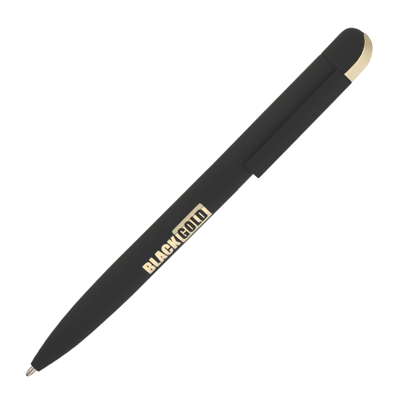 Ручка шариковая 'Jupiter', черный/золото, покрытие soft touch, золотая подложка на нижней части ручки и клипе, дот золотой, синий стержень 1 мм артикул: 6826-3G
