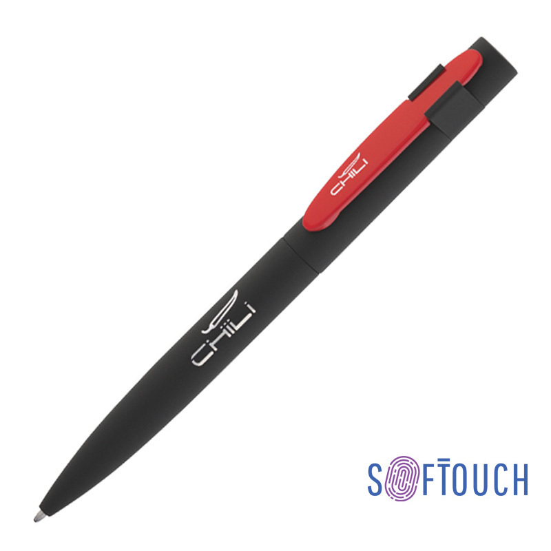 Ручка шариковая 'Lip', клип красный, корпус черный, покрытие soft touch, хромированная подложка на нижней части ручки и клипе, клип и держатель клипа металлические крашенные, синий стержень 1 мм артикул: 6844-3/4S