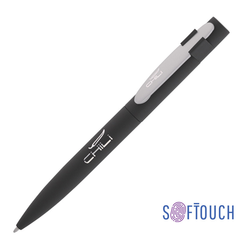 Ручка шариковая 'Lip', клип серебристый, корпус черный, покрытие soft touch, хромированная подложка на нижней части и клипе, клип и держатель клипа металлические крашенные, синий стержень 1 мм артикул: 6844-3/SS