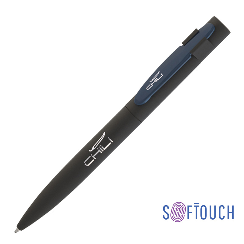 Ручка шариковая 'Lip', клип т.синий, корпус черный, покрытие soft touch, хромированная подложка на нижней части ручки и клипе, клип и держатель клипа металлические крашенные, синий стержень 1 мм артикул: 6844-3/21S