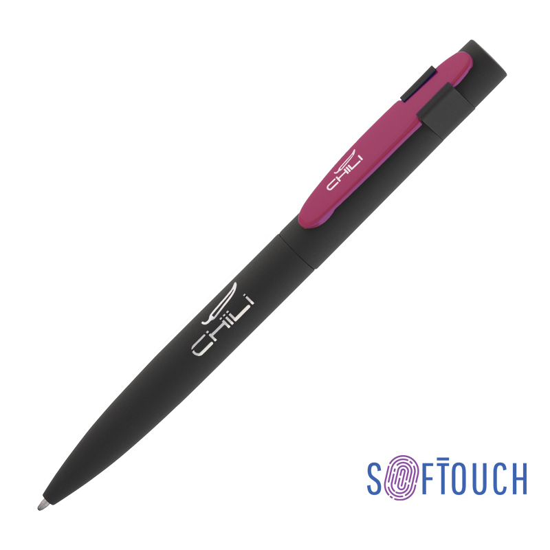 Ручка шариковая 'Lip',клип фуксия (226 U),корпус черный,покрытие soft touch,хромированная подложка на нижней части ручки и клипе,клип и держатель клипа металлические крашенные,синий стержень 1мм артикул: 6844-3/24S
