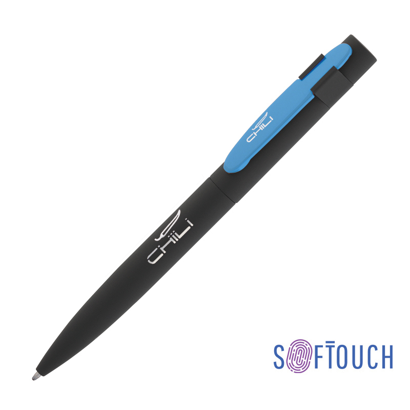 Ручка шариковая 'Lip',клип голубой (284 U),корпус черный,покрытие soft touch,хромированная подложка на нижней части ручки и клипе,клип и держатель клипа металлические крашенные,синий стержень1мм артикул: 6844-3/22S