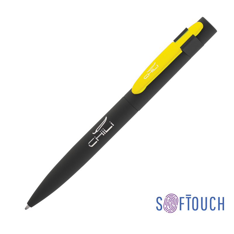 Ручка шариковая 'Lip',клип желтый (Yellow U),корпус черный,покрытие soft touch,хромированная подложка на нижней части ручки и клипе,клип и держатель клипа металлич. крашенные,синий стержень 1мм артикул: 6844-3/8S