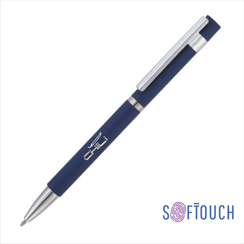 Ручка шариковая 'Mars' темно-синяя (281C), покрытие soft touch, хромированная подложка на нижней части ручки, синий стержень 1 мм артикул: 6833-21S