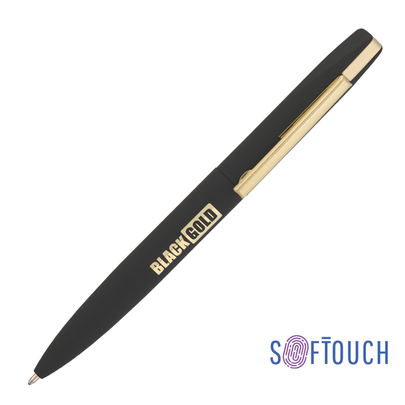 Ручка шариковая 'Mercury', черная, покрытие soft touch, золотые металлические элементы, золотая подложка на нижней части ручки, синий стержень 1 мм артикул: 6827-3G
