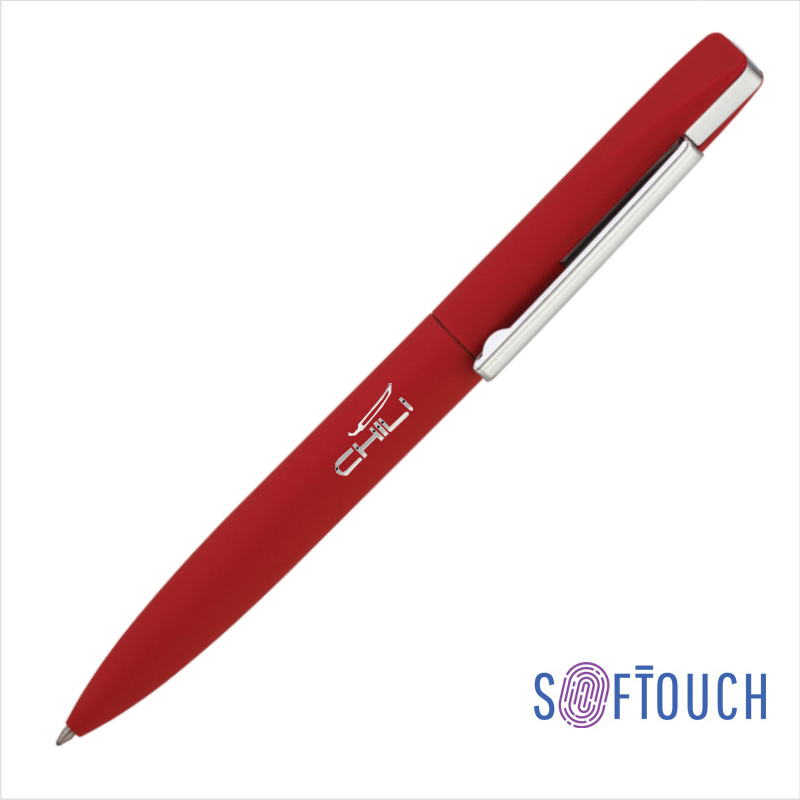 Ручка шариковая 'Mercury', красная (032С), покрытие soft touch, хромированная подложка на нижней части ручки, синий стержень 1 мм артикул: 6827-4S