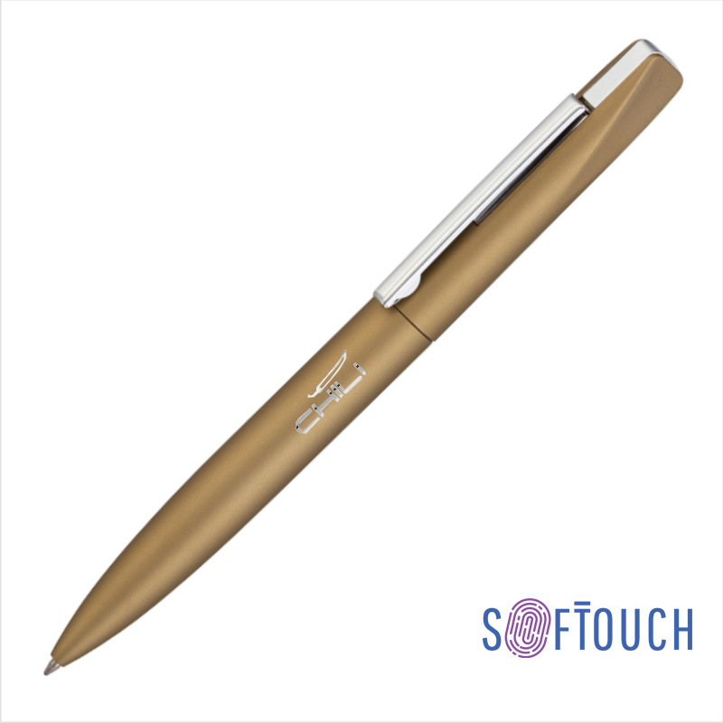 Ручка шариковая 'Mercury', золотая (871C), покрытие soft touch, хромированная подложка на нижней части ручки, синий стержень 1 мм артикул: 6827-GS