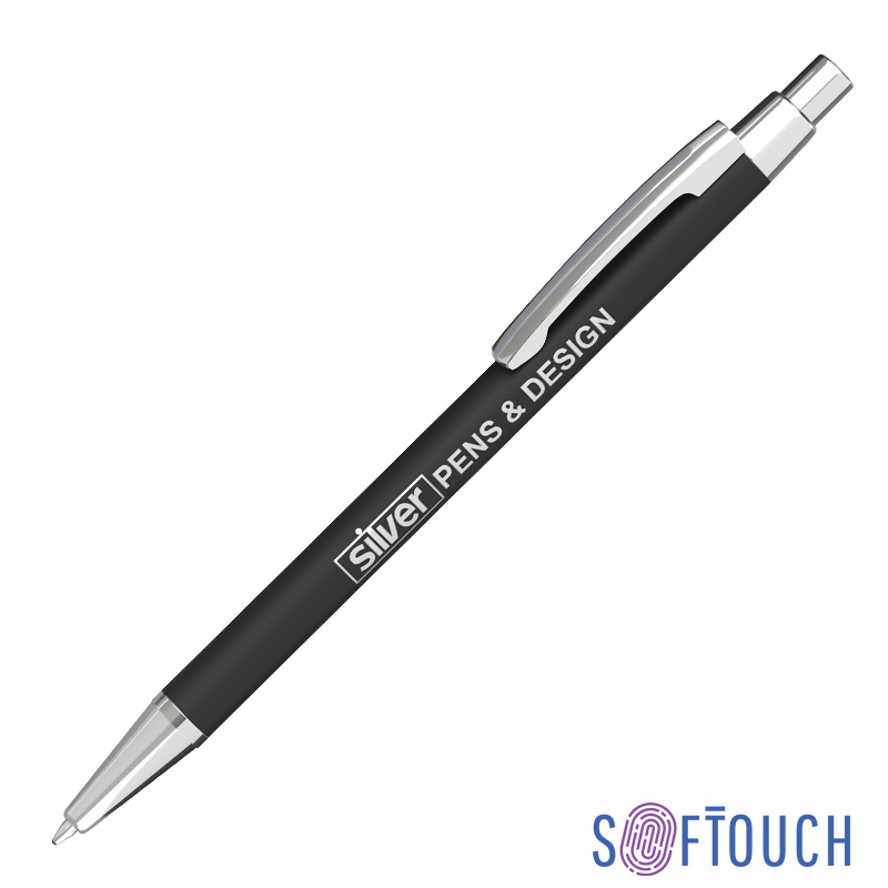 Ручка шариковая 'Ray' черная, металлический корпус в покрытии soft touch, металлический хромированный клип, синий стержень артикул: 7415-3S