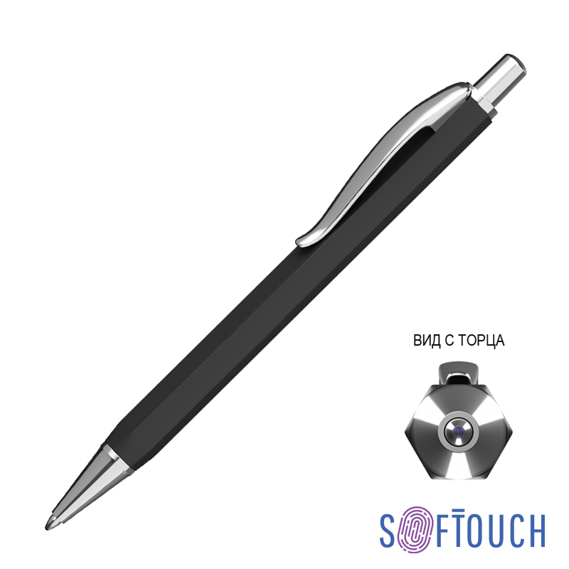 Ручка шариковая 'Stanley' черная, металлический шестигранный корпус в покрытии soft touch, блестящая серебристая подложка, метал. хром. клип, кнопка и наконечник из пластика хром., синий стержень артикул: 7419-3S