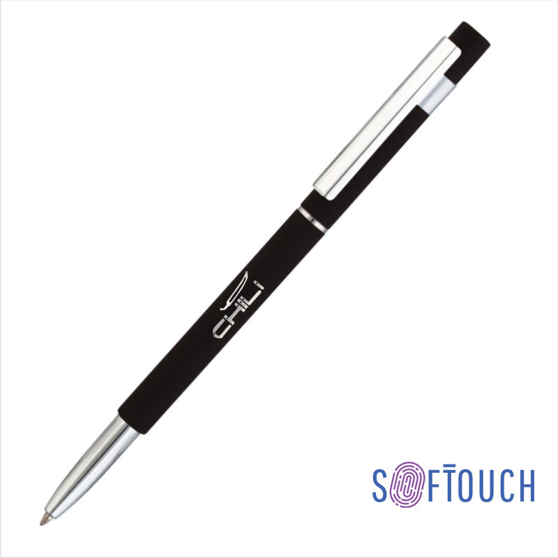 Ручка шариковая 'Star', черная, покрытие soft touch, хромированная подложка на нижней части ручки, синий стержень 1 мм артикул: 6812-3S