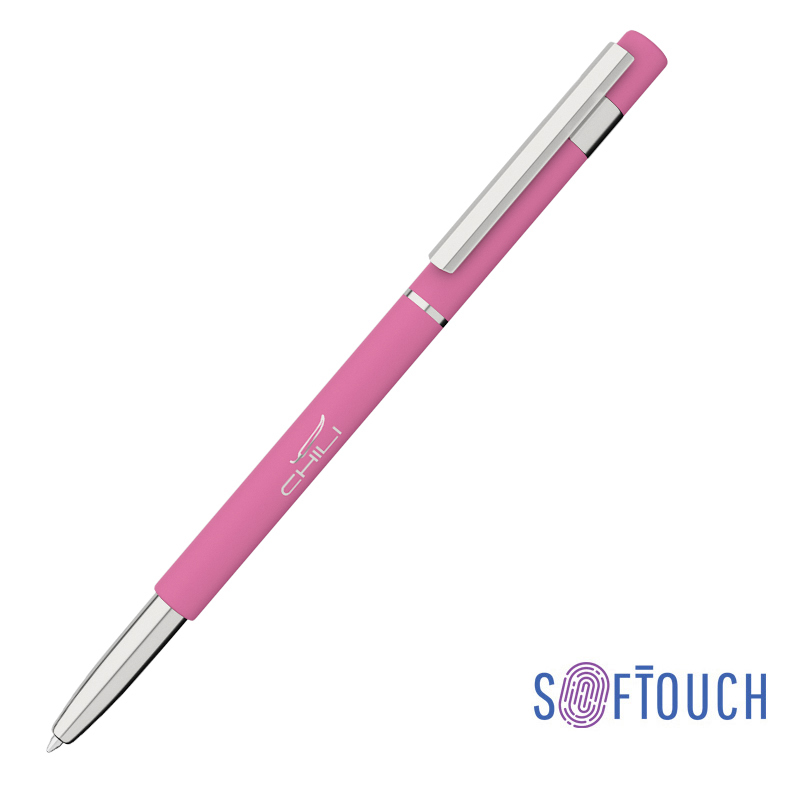 Ручка шариковая 'Star', розовый (2037U), покрытие soft touch, хромированная подложка на нижней части ручки, синий стержень 1 мм артикул: 6812-14S