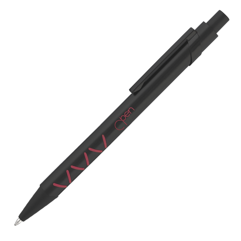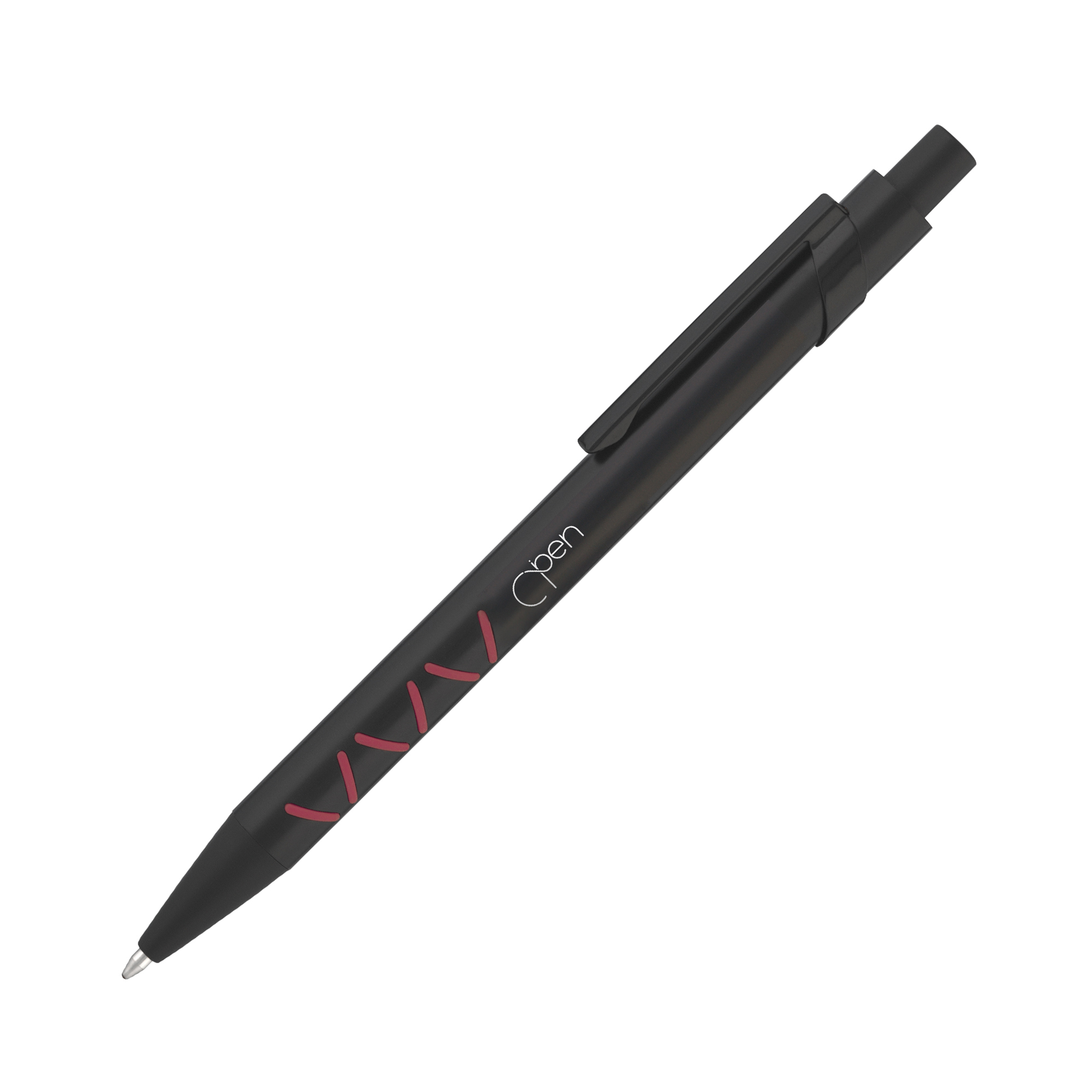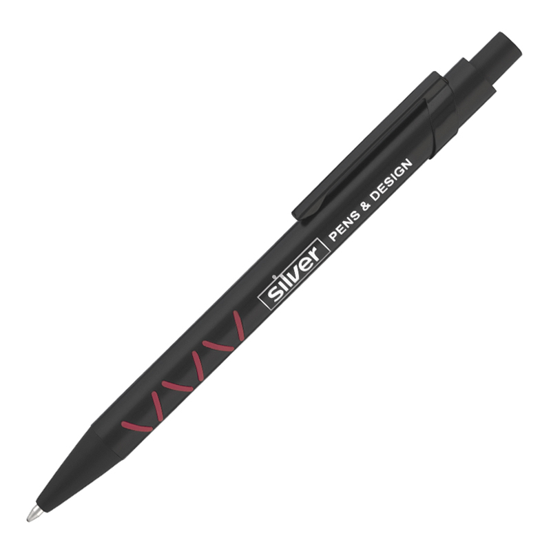 Ручка шариковая 'Will', черный корпус/красные резиновые полоски грипа, алюминий, красная подложка на корпусе, синий стержень артикул: 7410-3/4