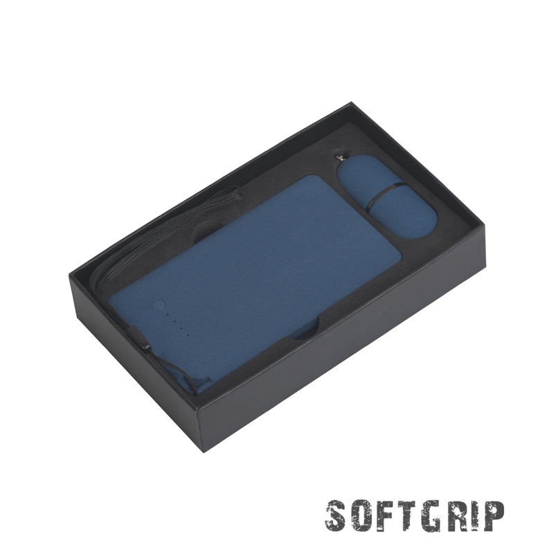 Набор флешка 'Камень' 8837-21/16Gb + источник 'Камень' 8842-21, емкость 4000 mAh, покрытие soft grip, темно-синий артикул: 8843-21