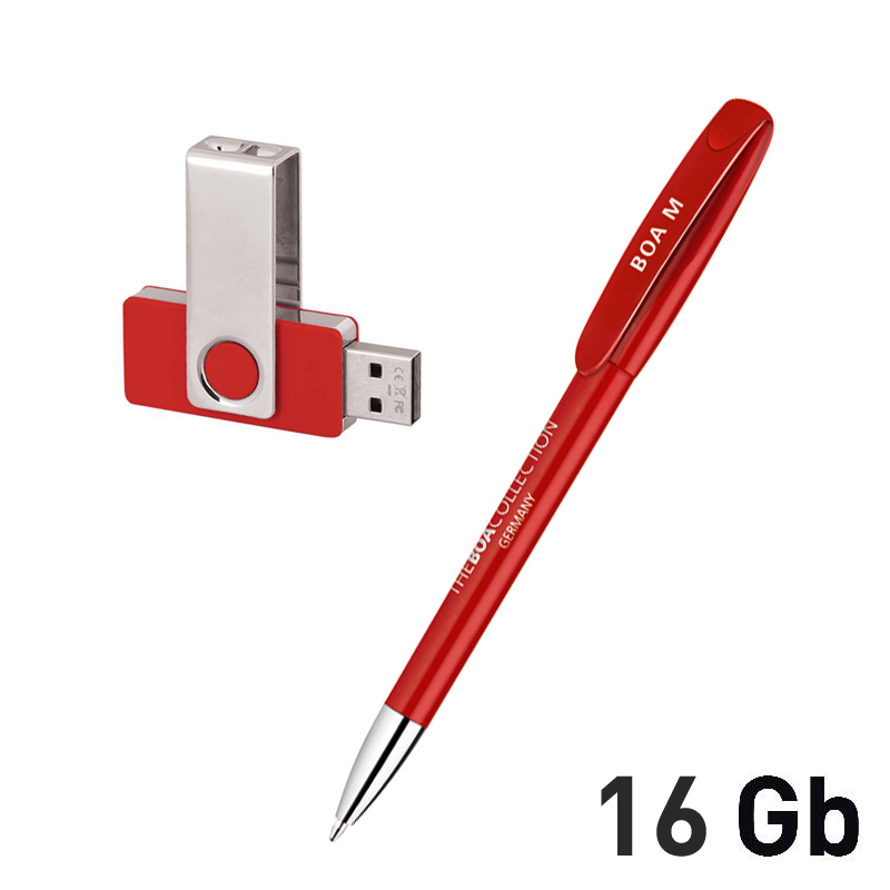 Набор ручка Boa 41175 + флешка Twista KP106 16Gb в футляре 70384, красный (Н). Ручка: красный корпус (Н). Флешка: корпус красный (H), клип и боковая артикул: 70175-4/16Gb