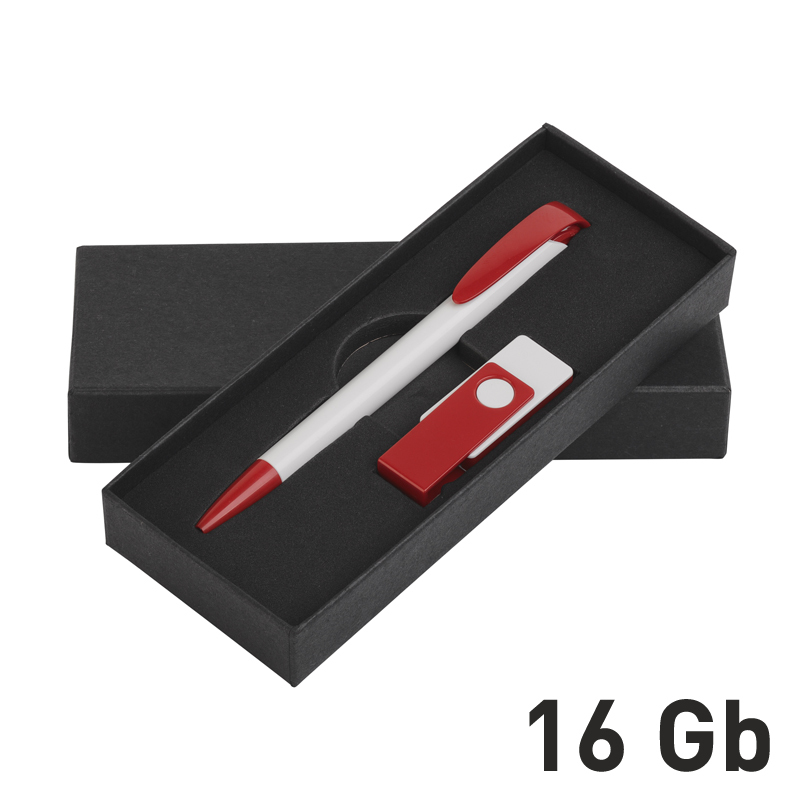 Набор ручка Jona 41120 + флешка Twista KP100 16Gb в футляре 70384, бело-красный (U+H). Ручка: белый корпус, красный клип, наконечник. Флешка: Корпус белый, клип и боковая панель красные артикул: 70120-1/4/16Gb