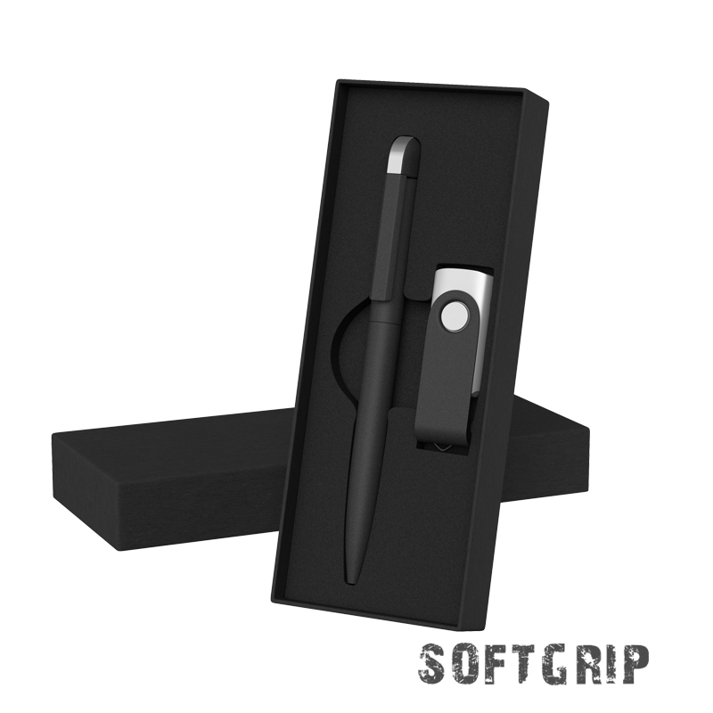 Набор ручка 'Jupiter SOFTGRIP' 6950-3 + флешка 'Vostok SOFTGRIP' 6951-3/8Gb, объем памяти 8GB, черный, покрытие soft grip артикул: 6971-3/8Gb
