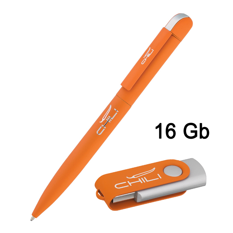 Набор ручка шариковая 'Jupiter' 6826-10S оранжевая + флеш-карта 'Vostok' 6874-10S/16Gb оранжевая, объем памяти 16Gb, покрытие soft touch артикул: 6897-10S/16Gb