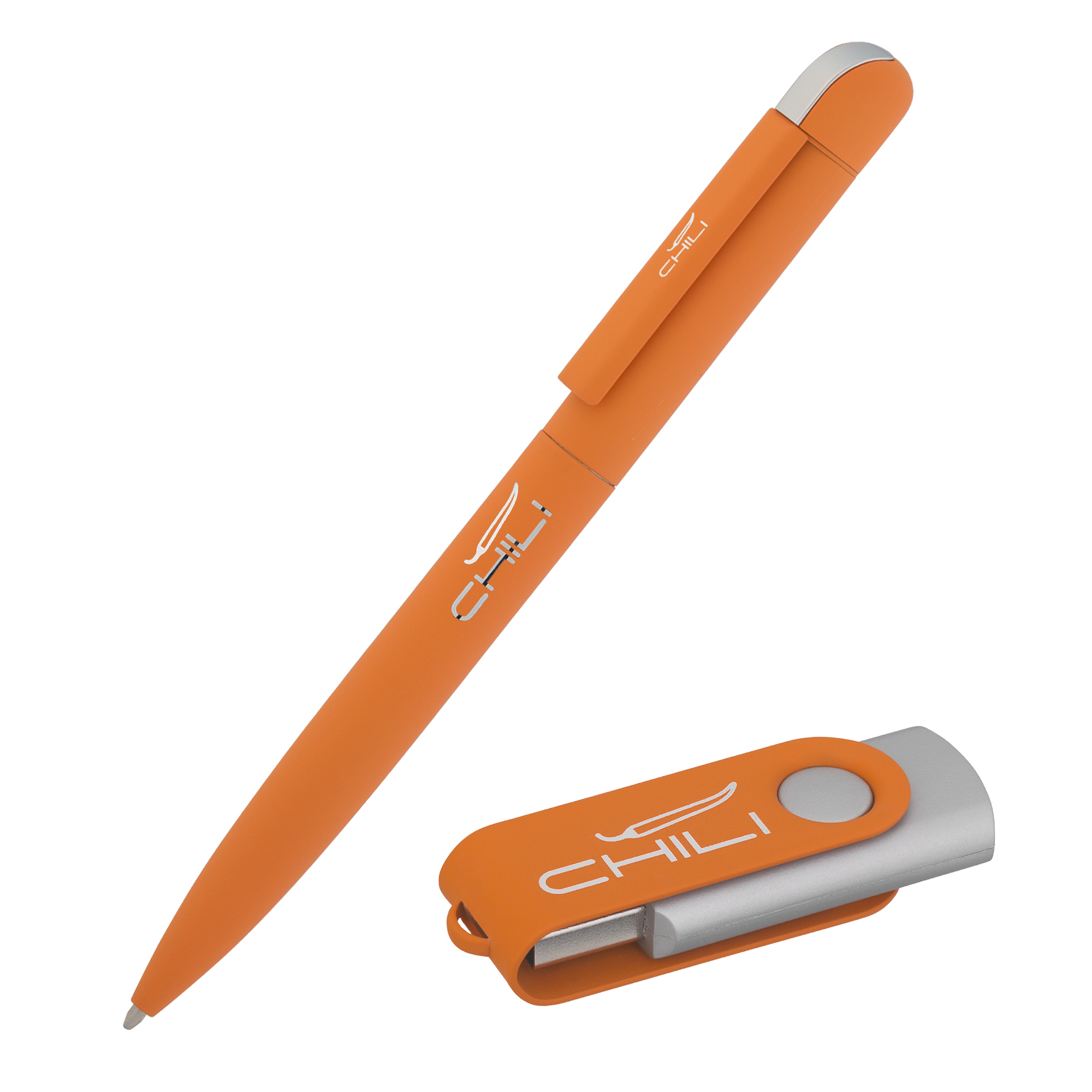 Набор ручка шариковая 'Jupiter' 6826-10S оранжевая + флеш-карта 'Vostok' 6874-10S/8Gb оранжевая, объем памяти 8GB, покрытие soft touch артикул: 6897-10S/8Gb