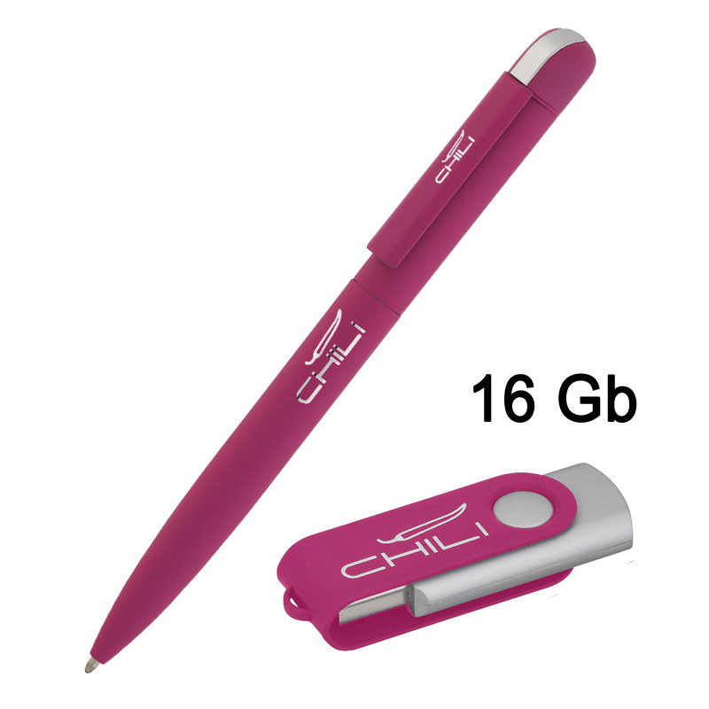 Набор ручка шариковая 'Jupiter' 6826-24S фуксия + флеш-карта 'Vostok' 6874-24S/16Gb фуксия, объем памяти 16Gb, покрытие soft touch артикул: 6897-24S/16Gb