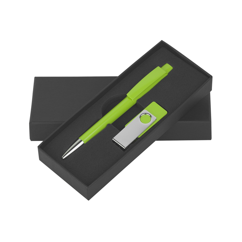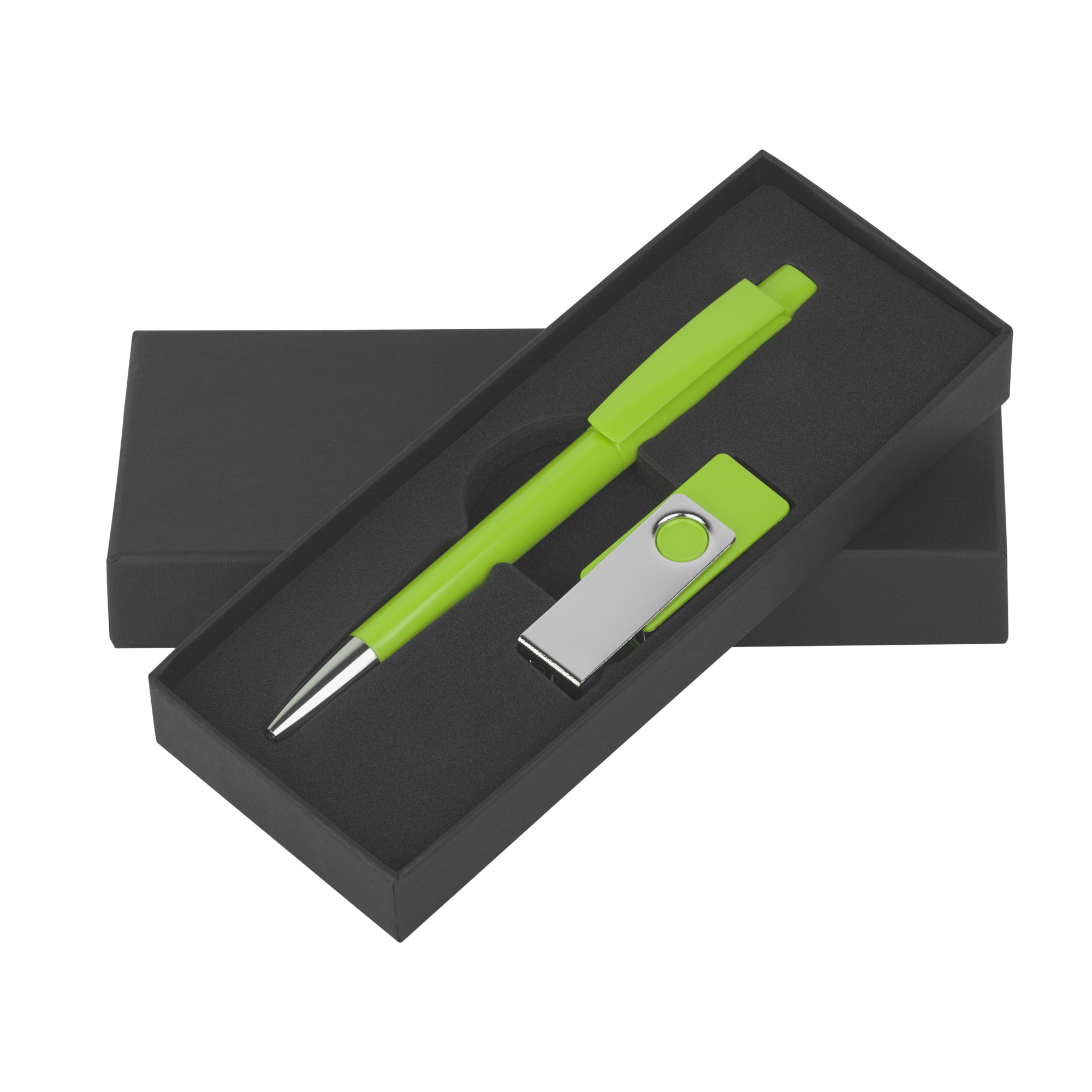 Набор ручка Zeno 41250 + флешка Twista KP106 16Gb в футляре 6848. Ручка: корпус зеленое яблоко (TZ). Флешка: корпус зеленое яблоко (TZ), клип и боковая панель блестящая серебристая (CR3) артикул: 70250-63/16Gb