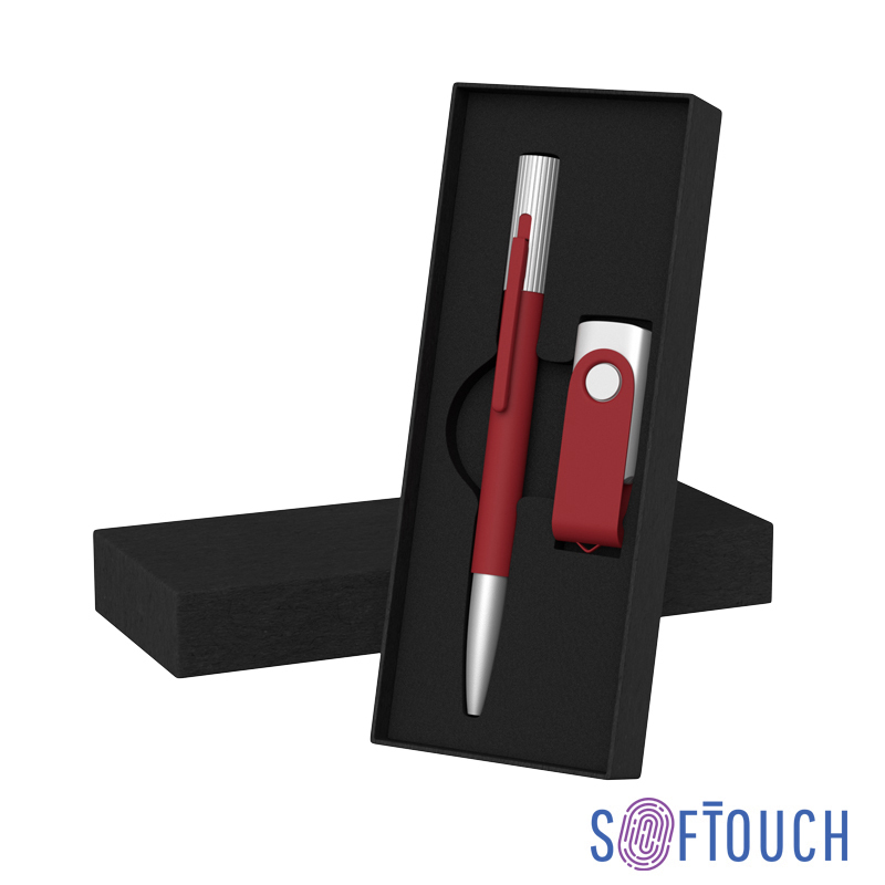 Набор ручка шариковая 'Clas' 6917-4S красная + флеш-карта 'Vostok' 6874-4S/16Gb красная, объем памяти 16Gb, покрытие soft touch артикул: 6919-4S/16Gb