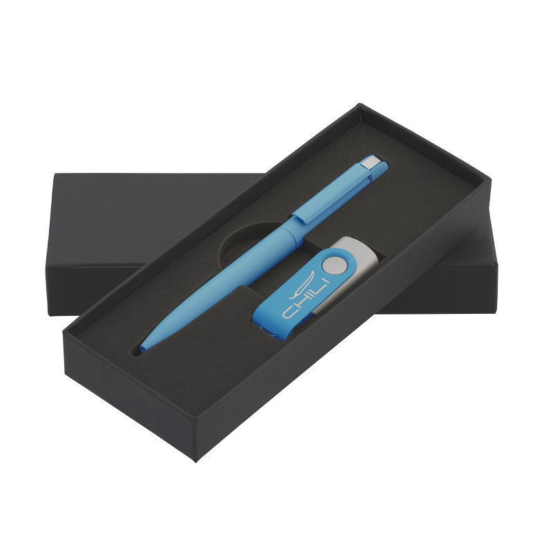 Набор Ручка шариковая 'Jupiter' 6826-22S голубая + Флеш-карта 'Vostok' 6874-22S/16Gb голубая, объем памяти 16Gb, покрытие soft touch артикул: 6877-22S/16Gb