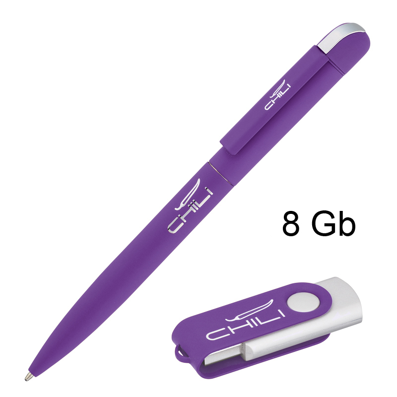 Набор ручка шариковая 'Jupiter' 6826-350S + флеш-карта 'Vostok' 6874-350S/8Gb, объем памяти 8GB, фиолетовый (2603С), покрытие soft touch артикул: 6897-350S/8Gb