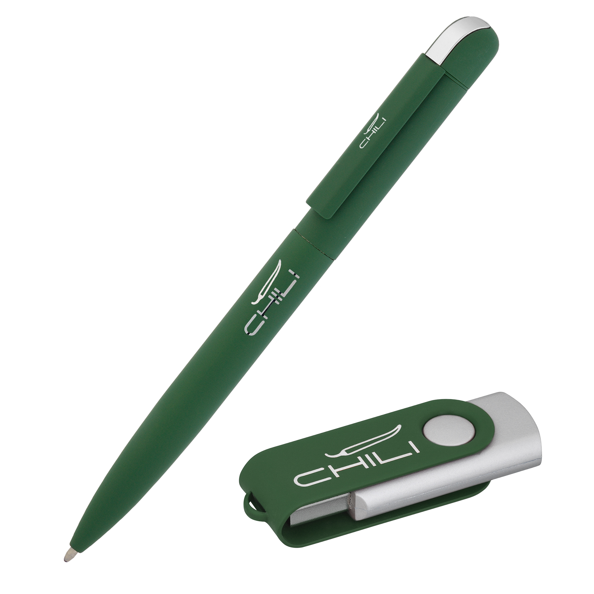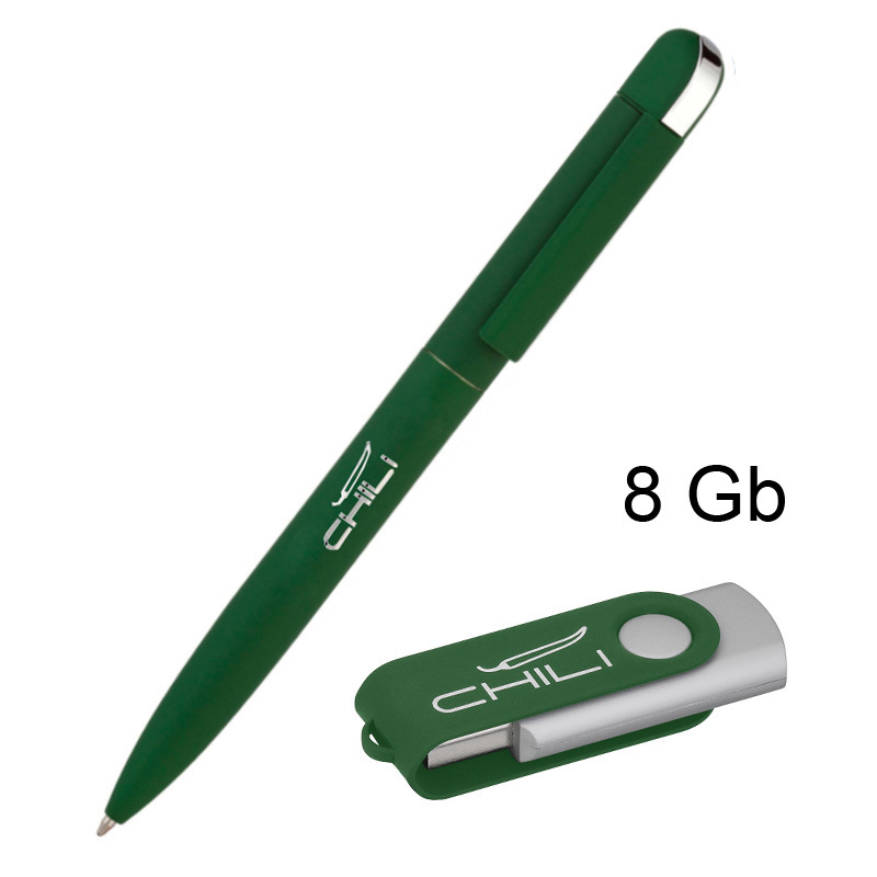 Набор ручка шариковая 'Jupiter' 6826-61S темно-зеленая + флеш-карта 'Vostok' 6874-61S/8Gb темно-зеленая, объем памяти 8GB, покрытие soft touch артикул: 6897-61S/8Gb