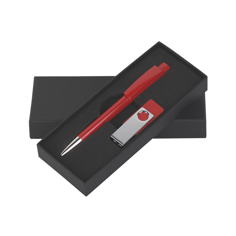 Набор ручка Zeno 41250 + флешка Twista KP106 8Gb в футляре 6848, красный (H). Ручка: красный корпус (H). Флешка: корпус красный (H), клип и боковая панель блестящая серебристая (CR3) артикул: 70250-4/8Gb