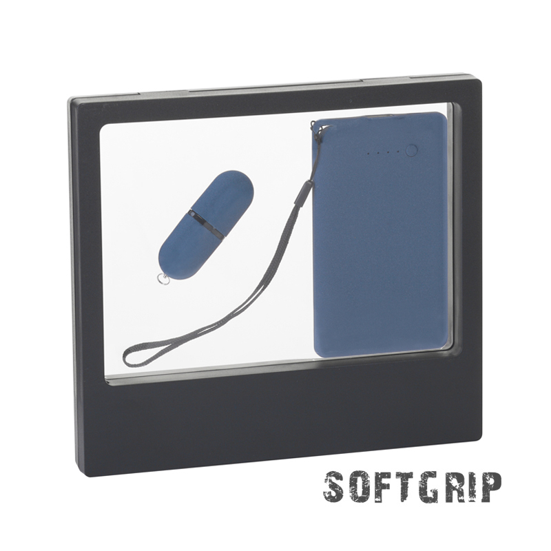 Набор флешка 'Камень' 8837-21/16Gb + источник 'Камень' 8842-21, емкость 4000 mAh, покрытие soft grip, темно-синий/черный артикул: 8847-21/3