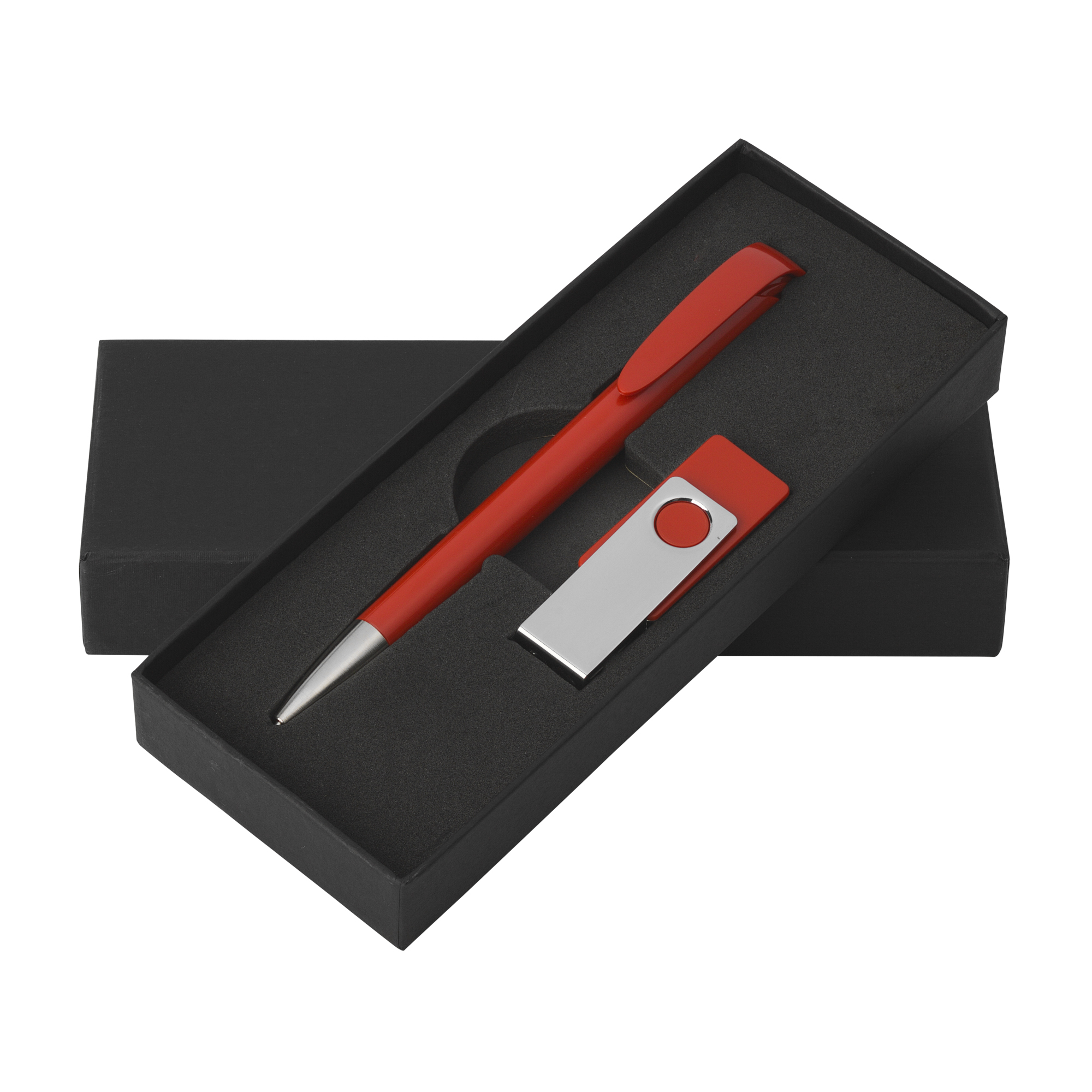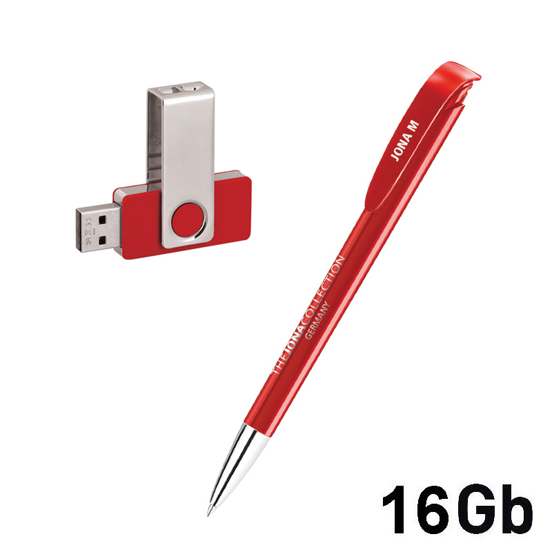 Набор ручка Jona 41125 + флешка Twista KP106 16Gb в футляре 70384, красный (Н). Ручка: красный корпус (Н). Флешка: корпус красный (H), клип и боковая панель блестящая серебристая (CR3) артикул: 70125-4/16Gb
