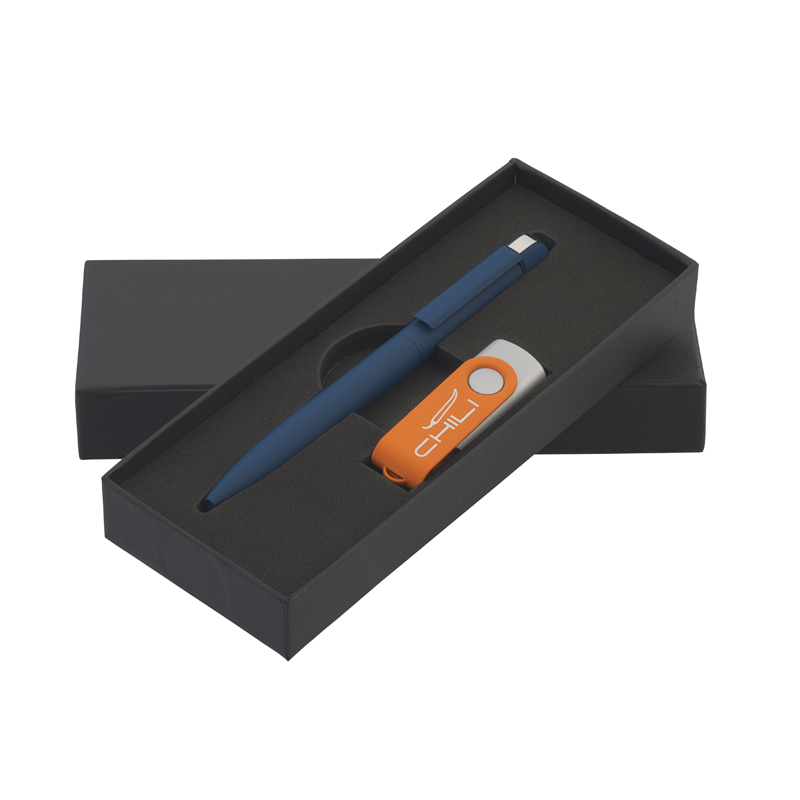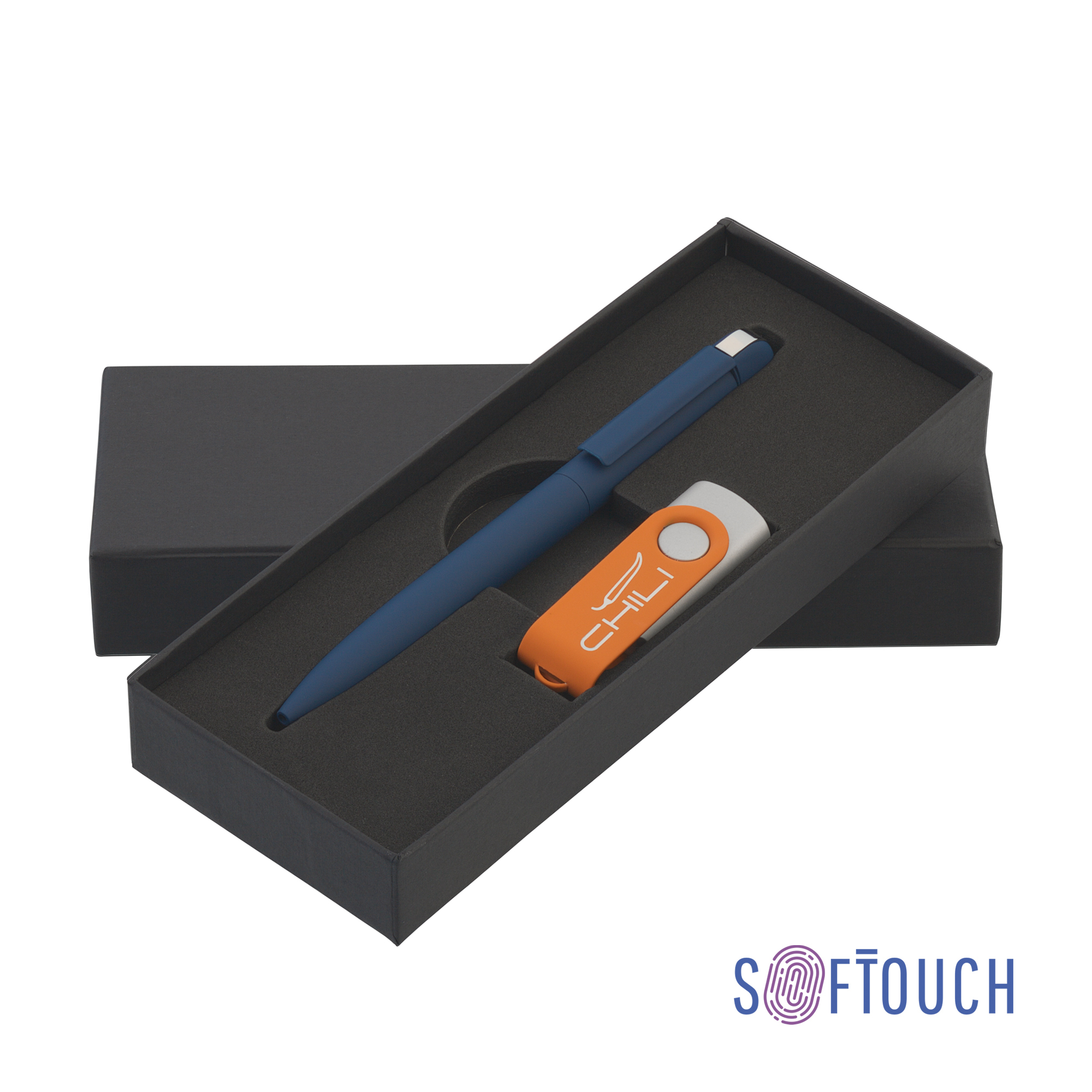 Набор Ручка шариковая 'Jupiter' 6826-21S темно-синяя + Флеш-карта 'Vostok' 6874-10S/8Gb оранжевая, объем памяти 8GB, покрытие soft touch артикул: 6877-21S/10S/8Gb