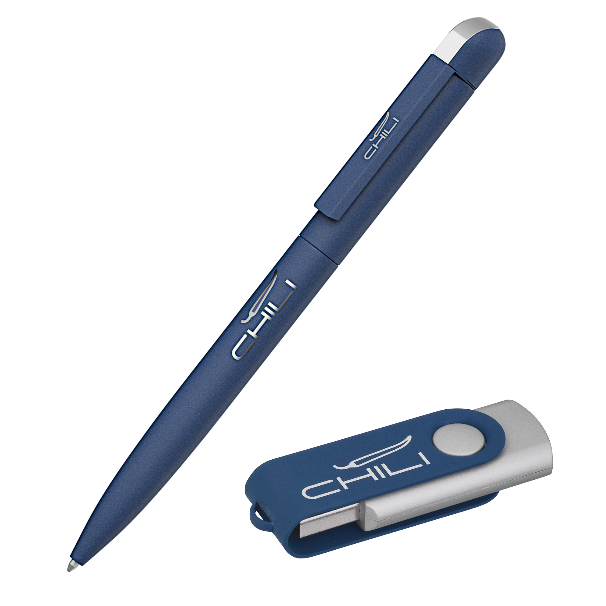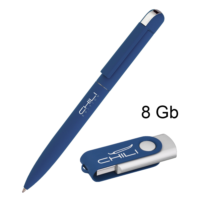 Набор ручка шариковая 'Jupiter' 6826-21S темно-синяя + флеш-карта 'Vostok' 6874-21S/8Gb темно-синяя, объем памяти 8GB, покрытие soft touch артикул: 6897-21S/8Gb
